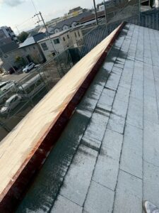 既存屋根はスレート屋根で、棟板金の錆がかなり進行していました。